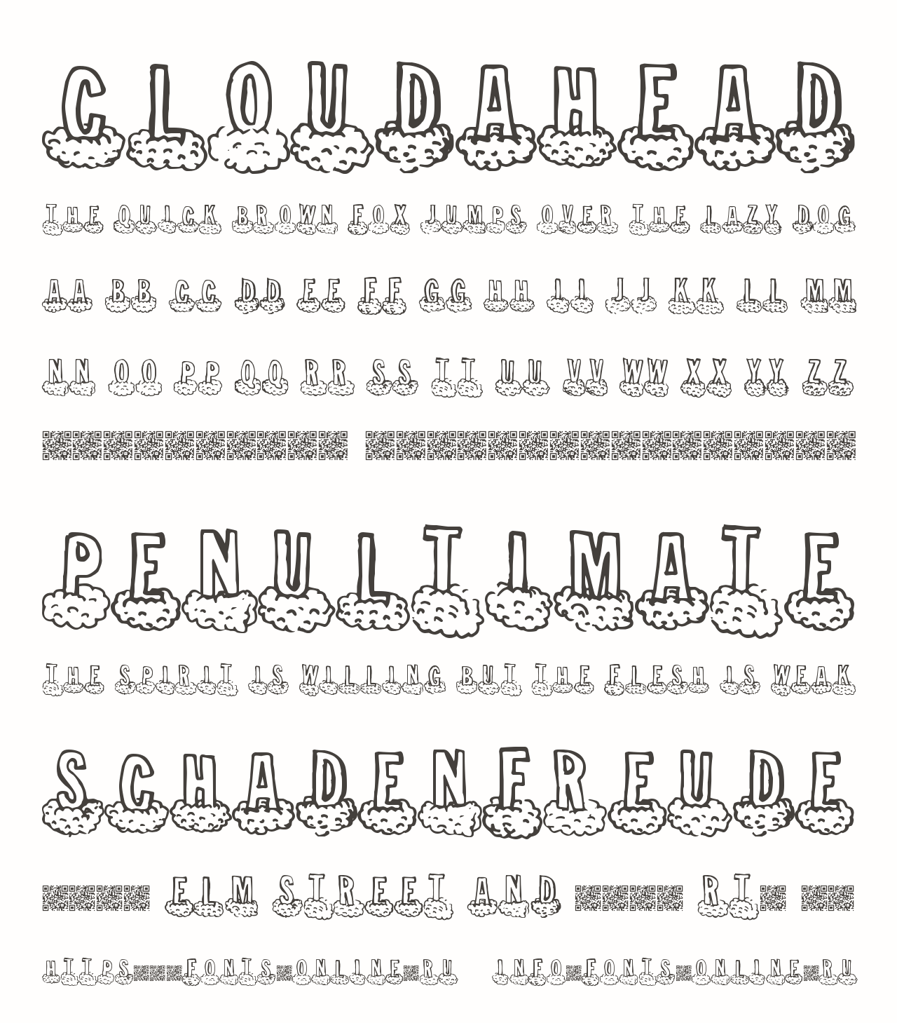 Шрифт CloudAhead. Гарнитура содержит 1 файл и поддерживает 12 языков. Разработка CloudAhead велась Xerographer Fonts.