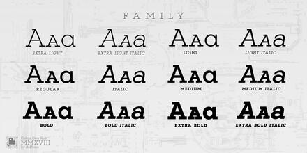 It is a geometric, minimalist typeface, with neo-grotesque modulations and slightly rounded corners. The typeface has alternative letters and numbers, small caps and advanced OpenType functions. The proportions, metrics and kerning I have configured meticulously for a perfect reading in any size.