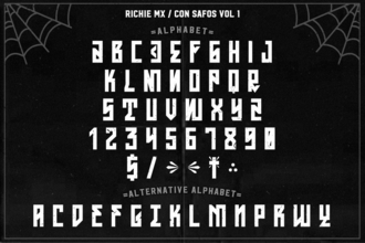 Шрифт Con Safos. Гарнитура содержит 1 файл и поддерживает 37 языков. Разработка Con Safos велась Richie Mx.