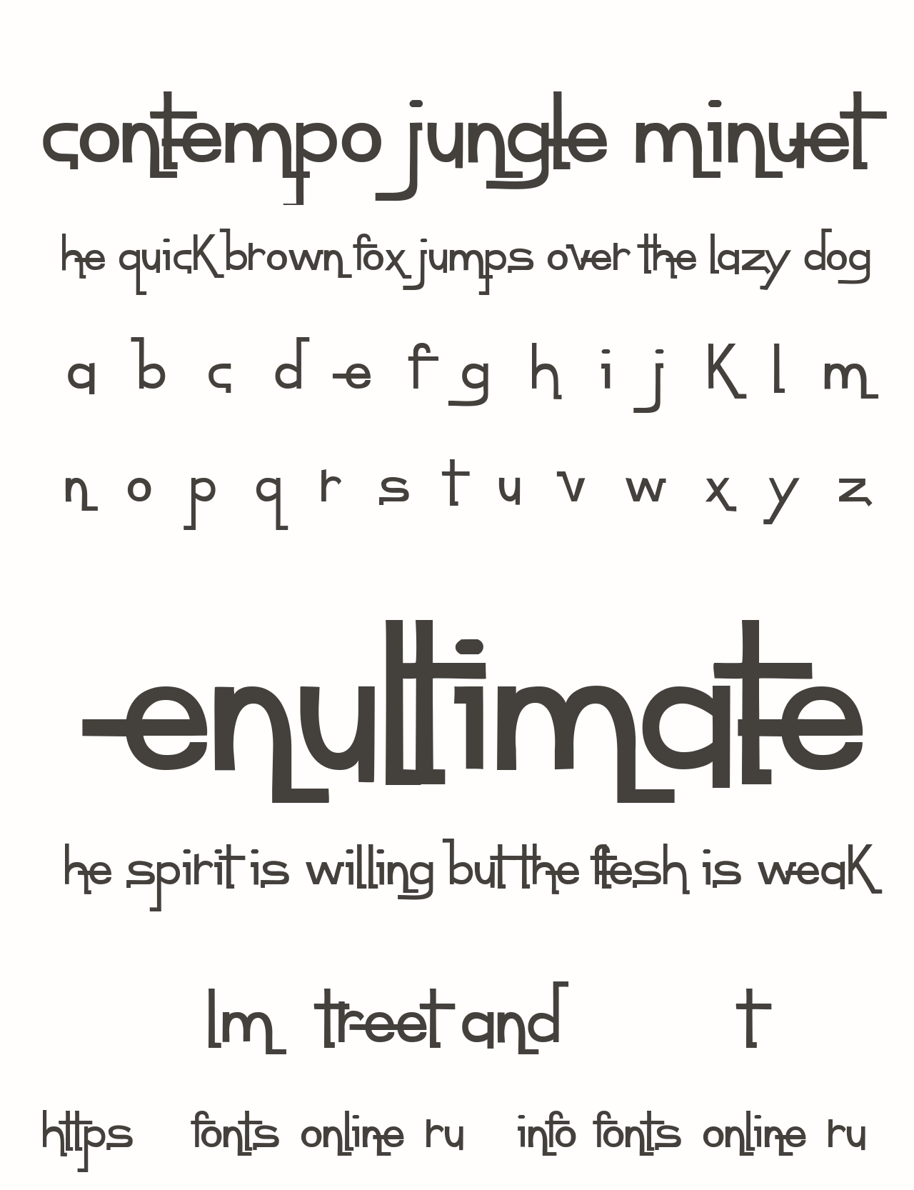 Шрифт contempo jungle minuet. Гарнитура содержит 1 файл и поддерживает 0 языков. Можно использовать в коммерческой и не коммерческой деятельности.