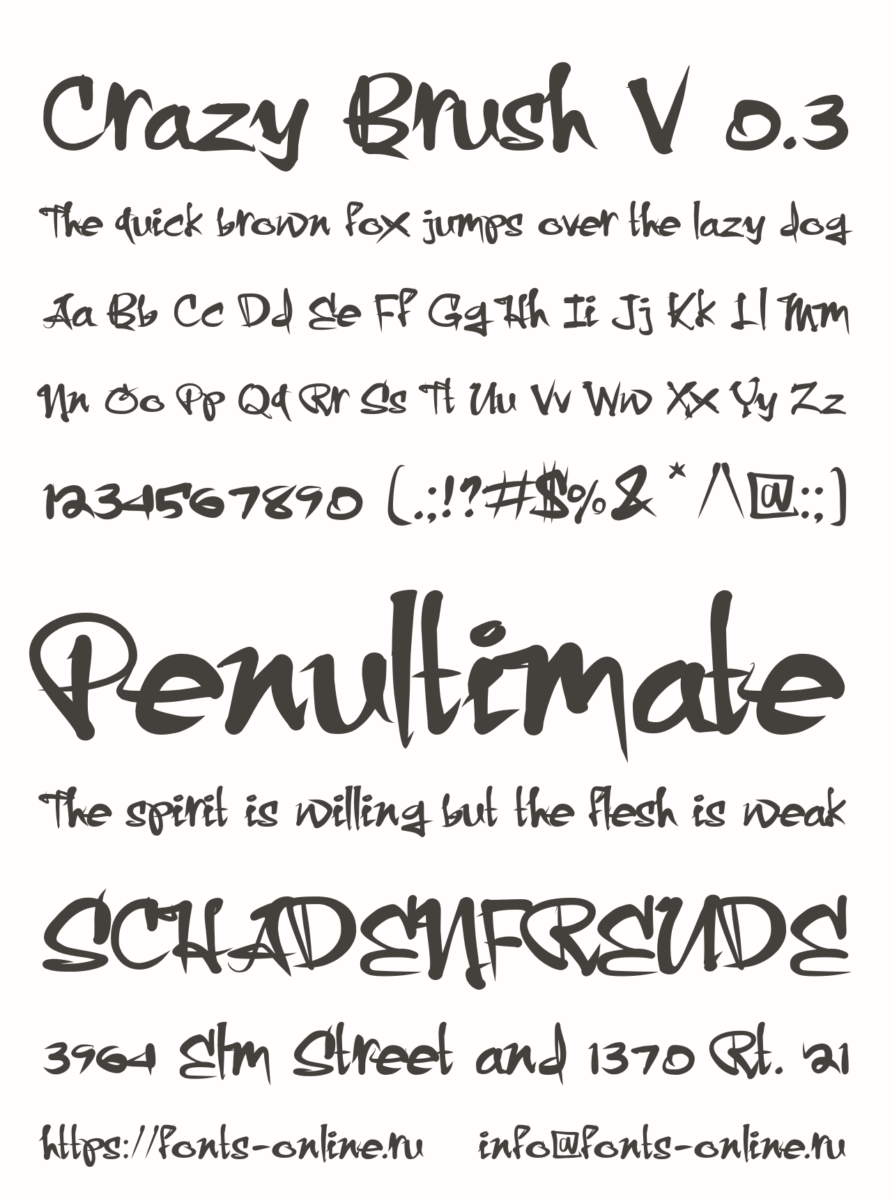 Шрифт Crazy Brush V 0.3. Гарнитура содержит 1 файл и поддерживает 35 языков. Можно использовать в не коммерческой деятельности.