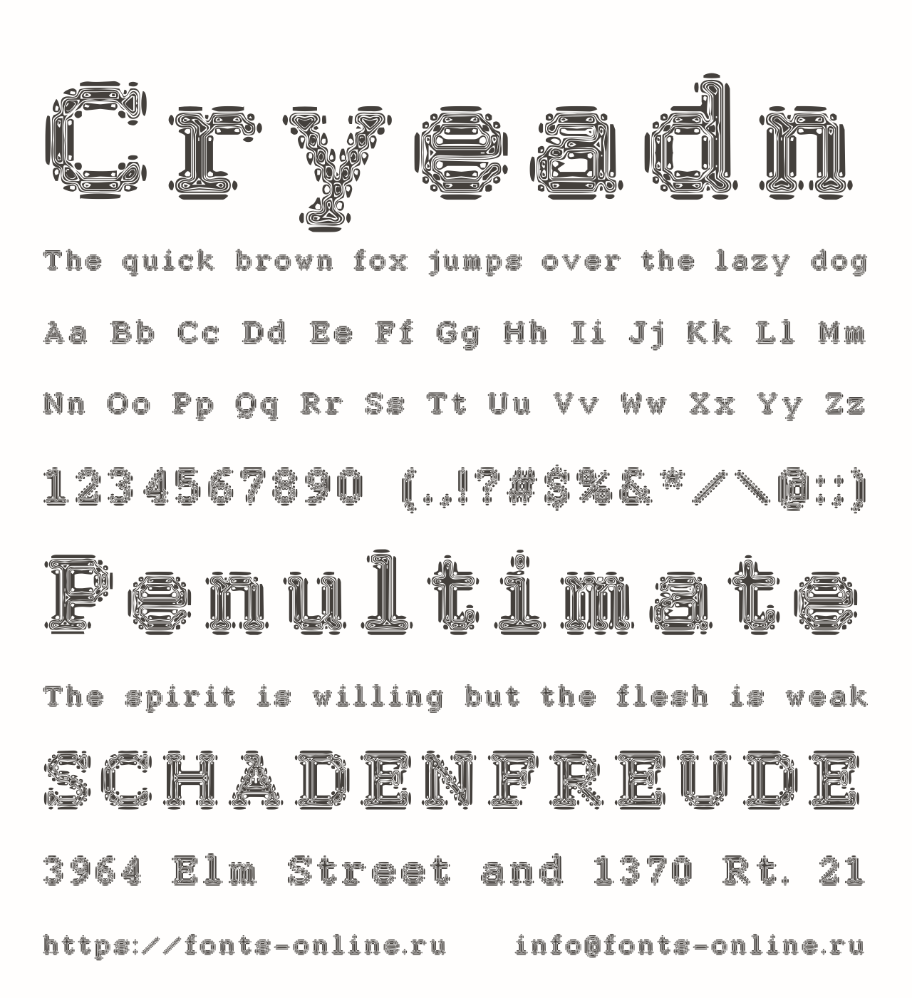 Шрифт Cryeadn. Гарнитура содержит 2 файла и поддерживает 13 языков. Можно использовать в коммерческой и не коммерческой деятельности.
