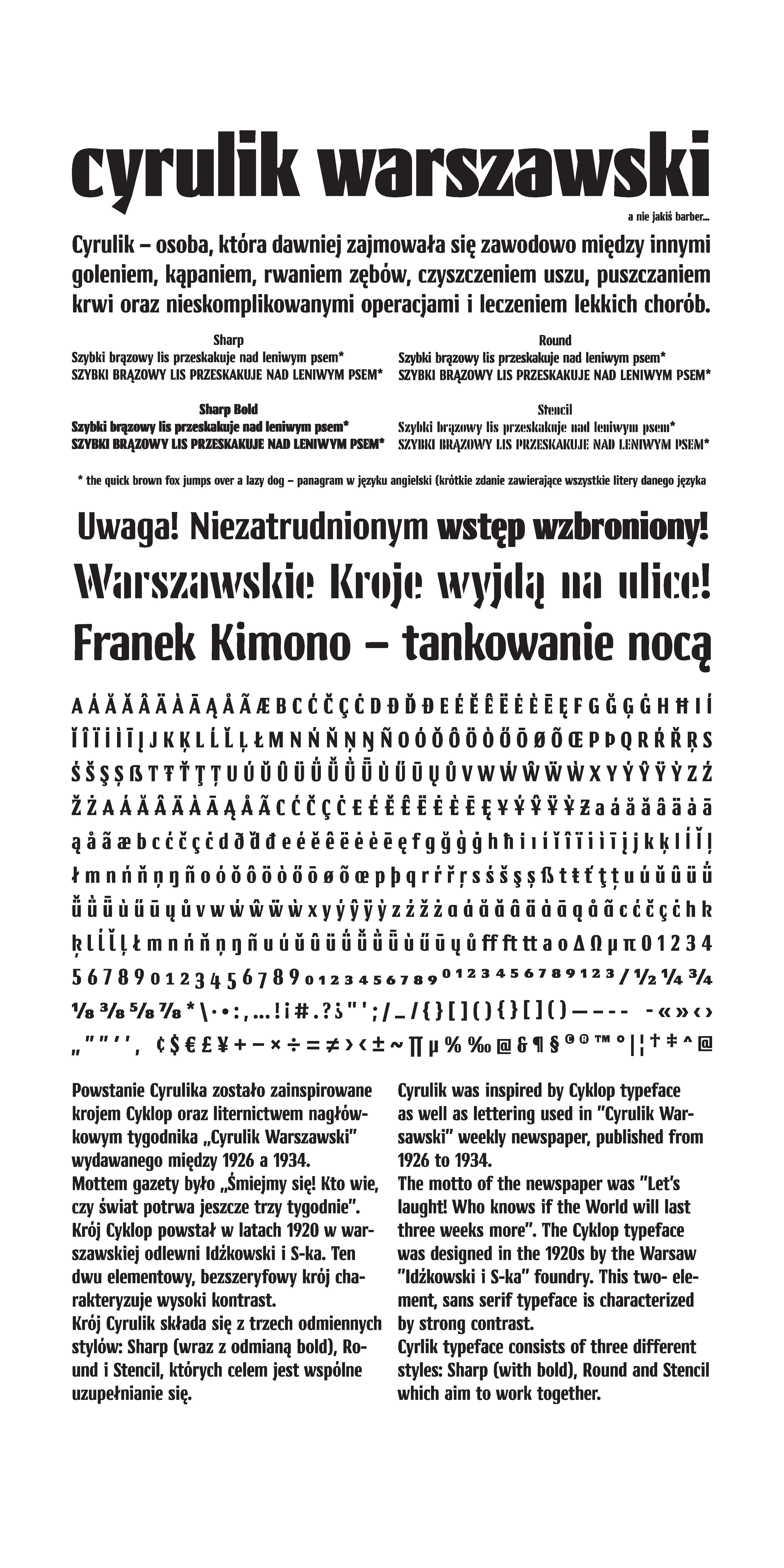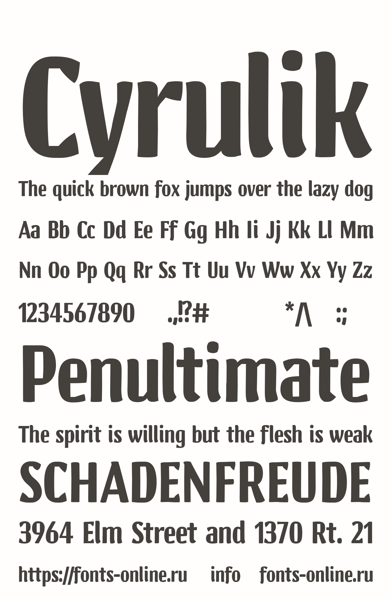 Шрифт Cyrulik. Гарнитура содержит 8 файлов и поддерживает 56 языков. Лицензия SIL OFL 1.1. Можно использовать в коммерческой и не коммерческой деятельности.