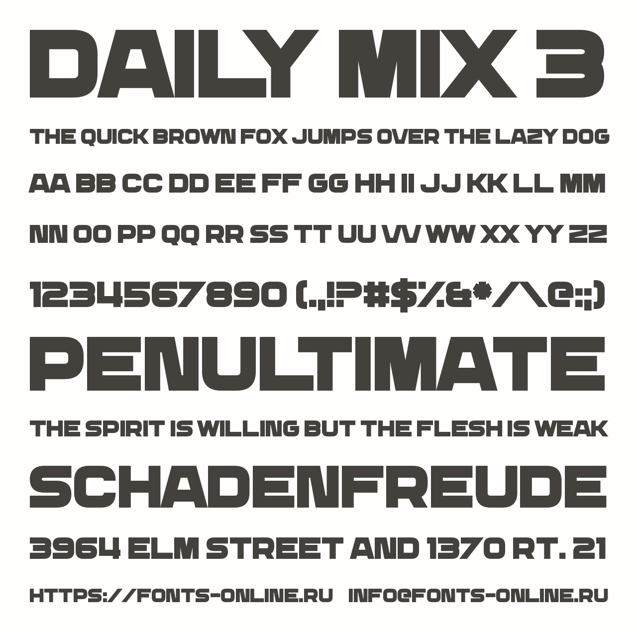 Шрифт Daily Mix 3. Гарнитура содержит 1 файл и поддерживает 12 языков. Можно использовать в не коммерческой деятельности. Разработка Daily Mix 3 велась Chequered Ink.