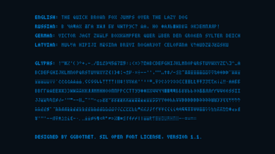 Шрифт DatDot. Гарнитура содержит 3 файла и поддерживает 44 языка. Лицензия SIL OFL 1.1. Можно использовать в коммерческой и не коммерческой деятельности. Разработка DatDot велась GGBotNet.