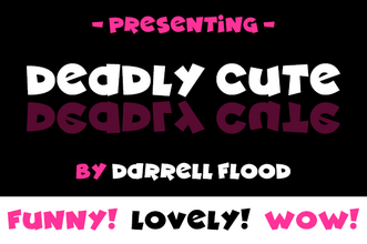 Шрифт Deadly Cute. Гарнитура содержит 4 файла и поддерживает 37 языков. Разработка Deadly Cute велась Darrell Flood.