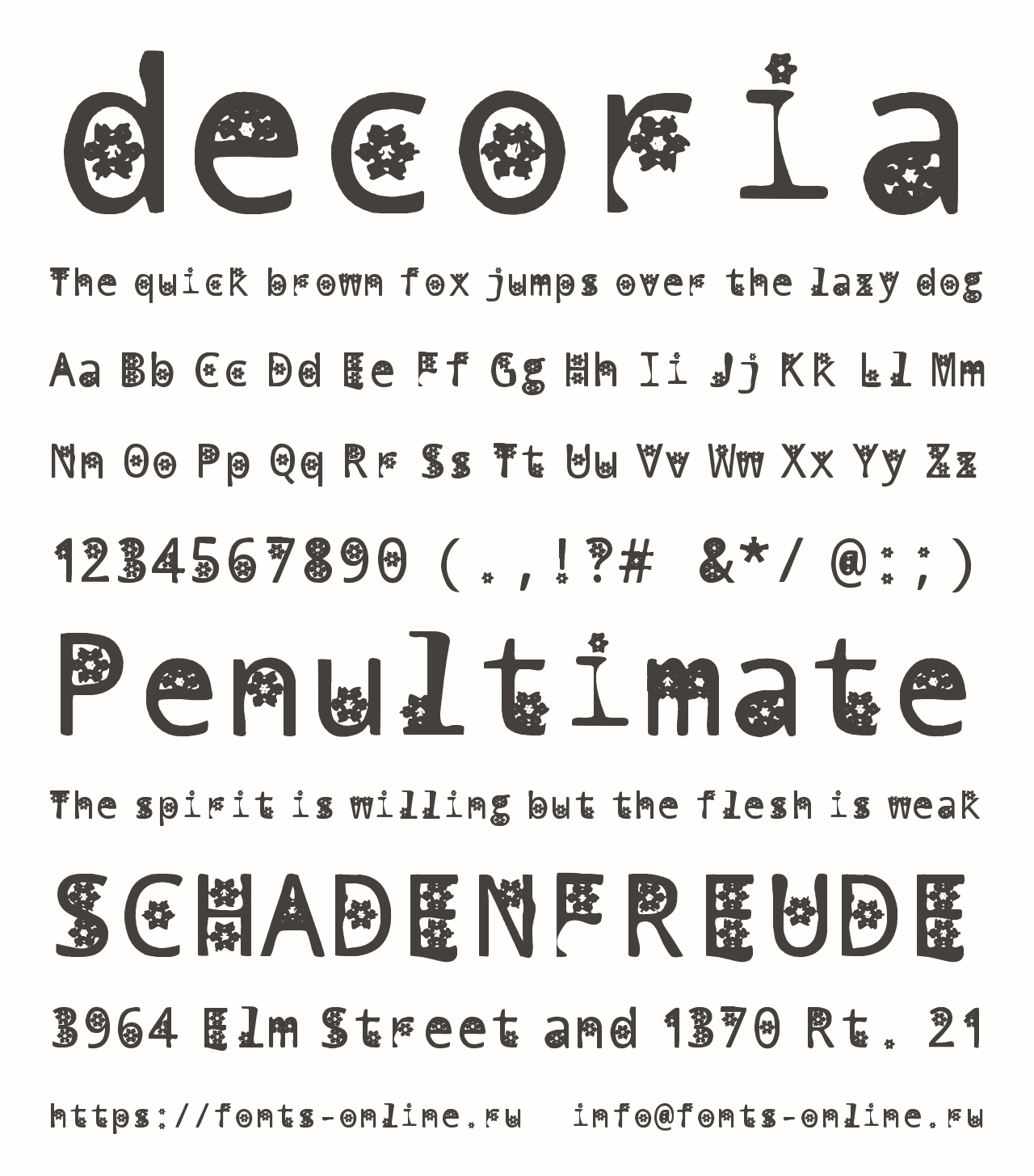 Шрифт decoria. Гарнитура содержит 1 файл и поддерживает 12 языков. Можно использовать в коммерческой и не коммерческой деятельности.