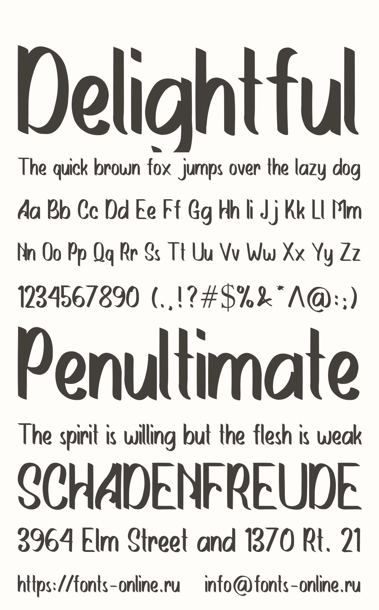 Шрифт Delightful. Гарнитура содержит 2 файла и поддерживает 37 языков. Можно использовать в не коммерческой деятельности. Разработка Delightful велась Staircase Studio.