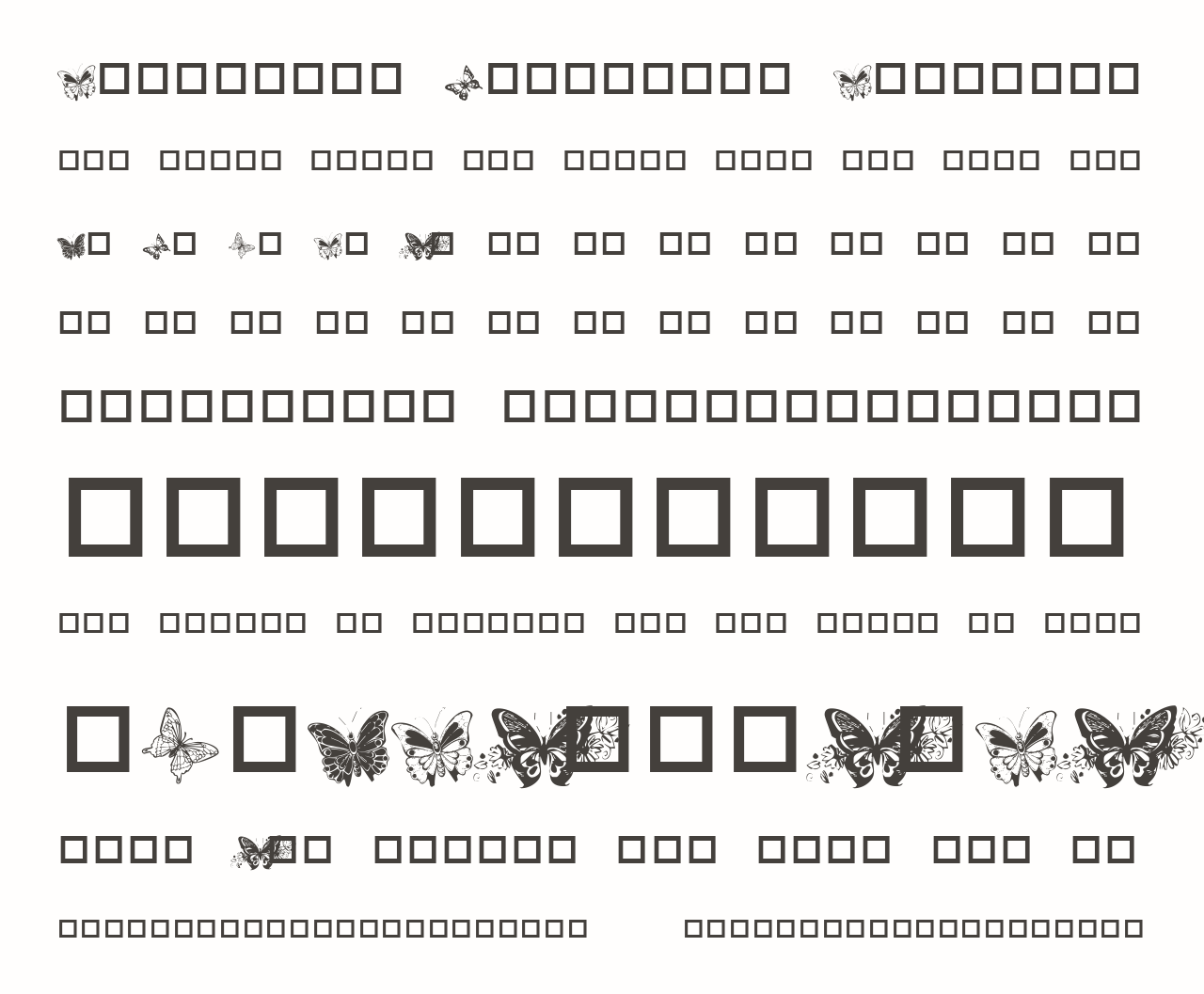 Шрифт Destiny's Butterfly Dingbats. Гарнитура содержит 1 файл и поддерживает 0 языков. Можно использовать в коммерческой и не коммерческой деятельности.