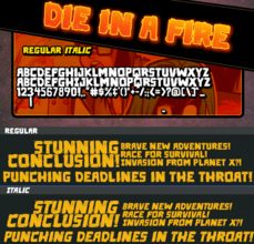 Шрифт Die in a fire PG. Гарнитура содержит 2 файла и поддерживает 37 языков. Можно использовать в не коммерческой деятельности. Разработка Die in a fire PG велась PressGang Studios.