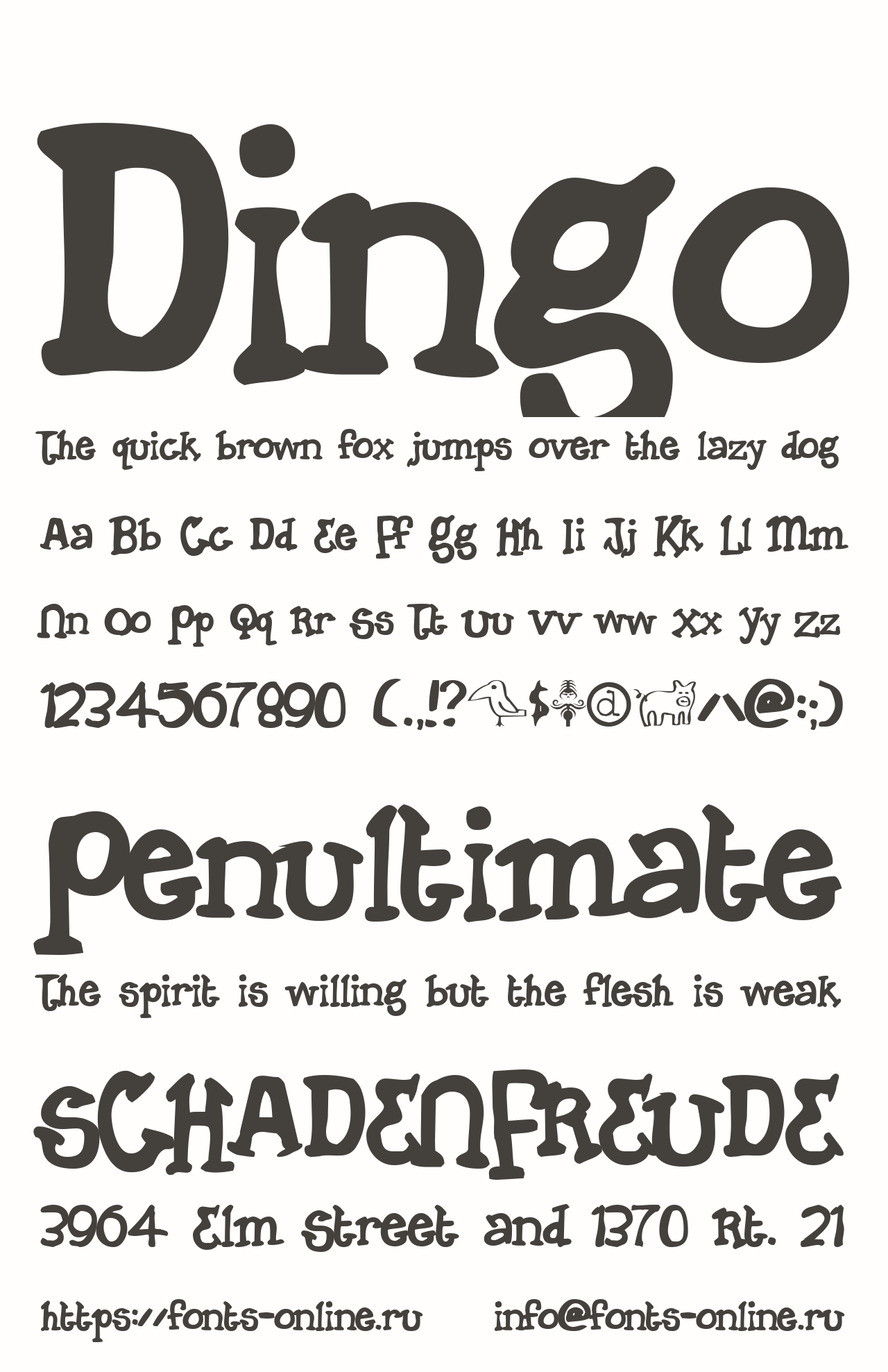 Шрифт Dingo. Гарнитура содержит 1 файл и поддерживает 12 языков. Можно использовать в коммерческой и не коммерческой деятельности.