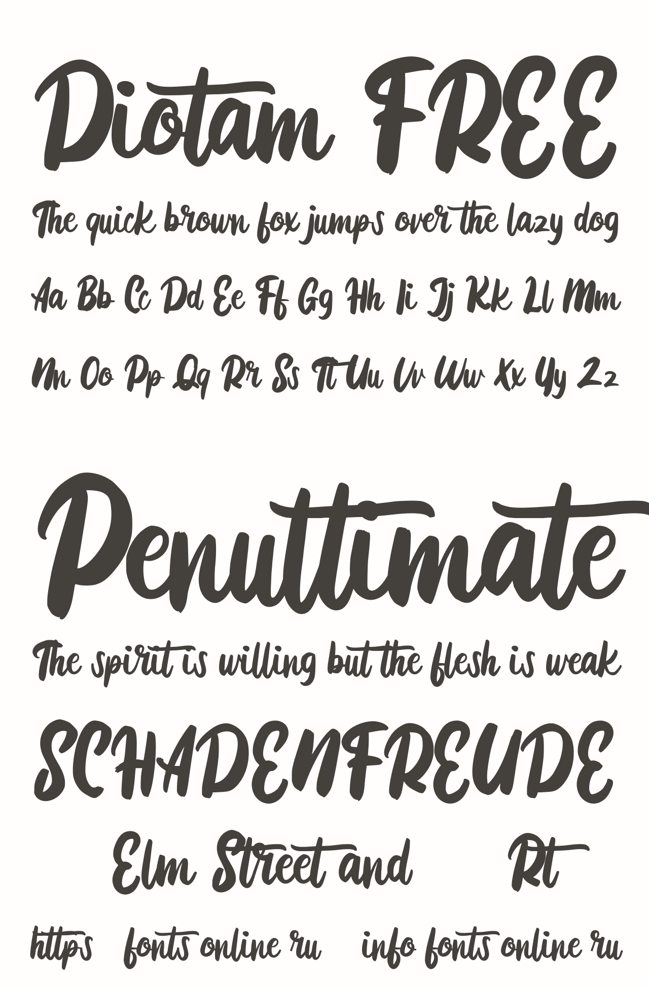 Шрифт Diotam FREE. Гарнитура содержит 2 файла и поддерживает 12 языков. Можно использовать в не коммерческой деятельности. Разработка Diotam FREE велась Vunira Design.