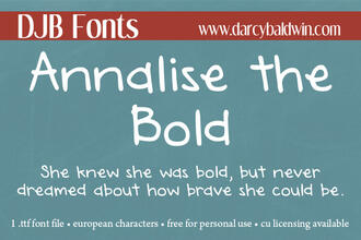 Шрифт DJB Annalise the Brave. Гарнитура содержит 2 файла и поддерживает 56 языков. Можно использовать в не коммерческой деятельности. Разработка DJB Annalise the Brave велась DJB Fonts.