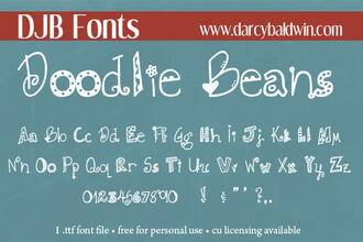 Шрифт DJB Doodlie Beans. Гарнитура содержит 1 файл и поддерживает 37 языков. Можно использовать в не коммерческой деятельности. Разработка DJB Doodlie Beans велась DJB Fonts.