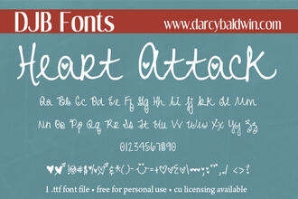 Шрифт DJB Heart Attack. Гарнитура содержит 2 файла и поддерживает 37 языков. Можно использовать в не коммерческой деятельности. Разработка DJB Heart Attack велась DJB Fonts.