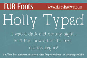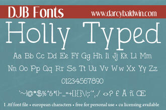 Шрифт DJB Holly Typed. Гарнитура содержит 1 файл и поддерживает 56 языков. Можно использовать в не коммерческой деятельности. Разработка DJB Holly Typed велась DJB Fonts.