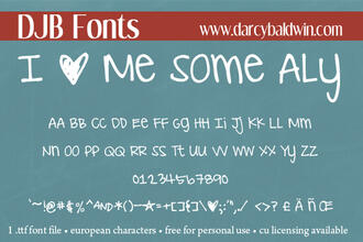 Шрифт DJB I Love Me Some Aly. Гарнитура содержит 1 файл и поддерживает 56 языков. Можно использовать в не коммерческой деятельности. Разработка DJB I Love Me Some Aly велась DJB Fonts.