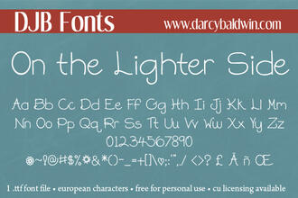 Шрифт DJB On the Lighter Side. Гарнитура содержит 1 файл и поддерживает 56 языков. Можно использовать в не коммерческой деятельности. Разработка DJB On the Lighter Side велась DJB Fonts.