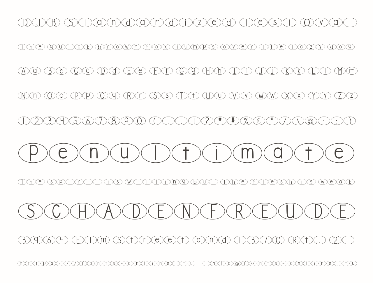 Шрифт DJB Standardized Test Oval. Гарнитура содержит 2 файла и поддерживает 37 языков. Можно использовать в не коммерческой деятельности. Разработка DJB Standardized Test Oval велась DJB Fonts.