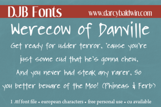 Шрифт DJB WERECOW OF DANVILLE. Гарнитура содержит 1 файл и поддерживает 37 языков. Можно использовать в не коммерческой деятельности. Разработка DJB WERECOW OF DANVILLE велась DJB Fonts.