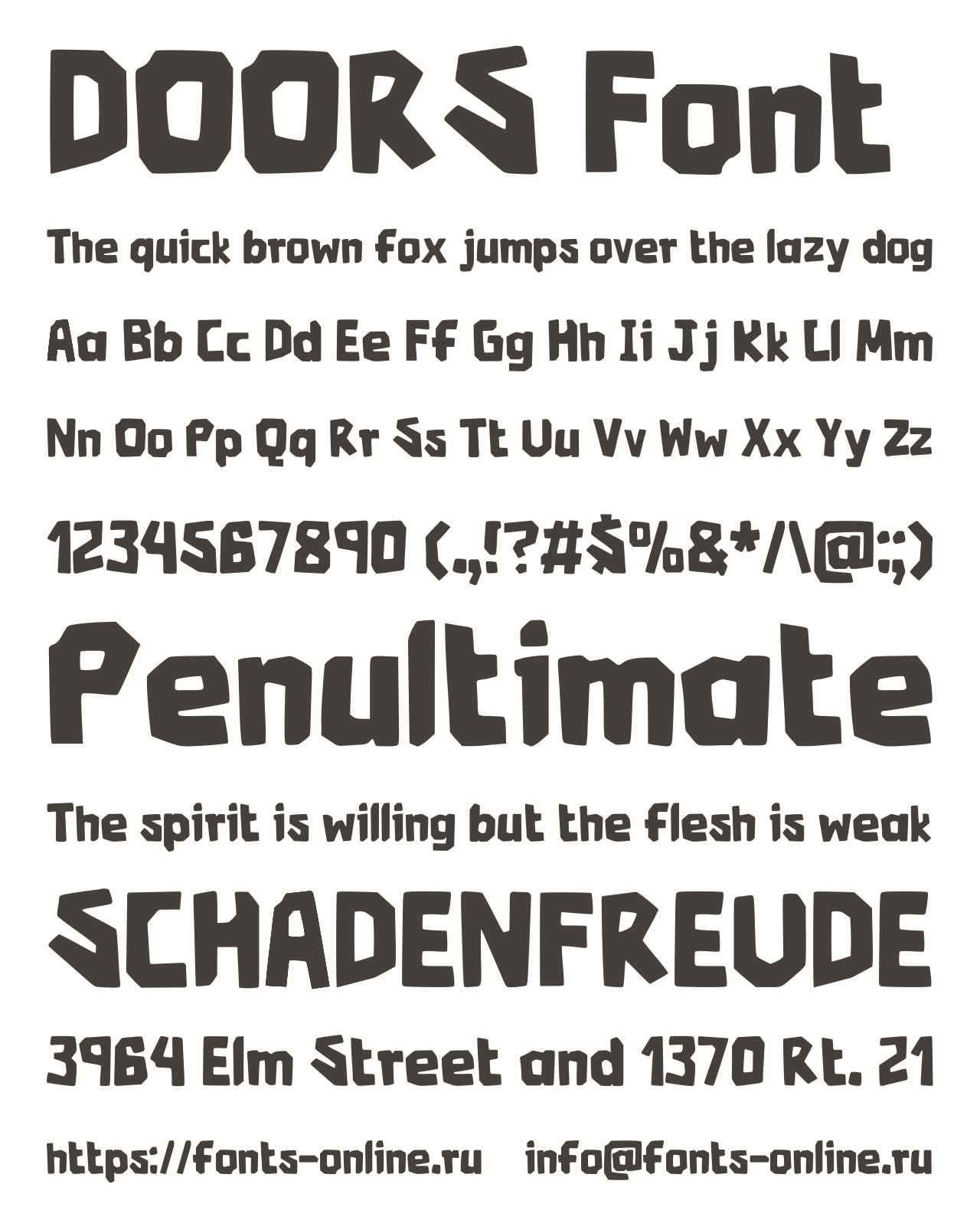 Шрифт DOORS Font . Гарнитура содержит 1 файл и поддерживает 20 языков.