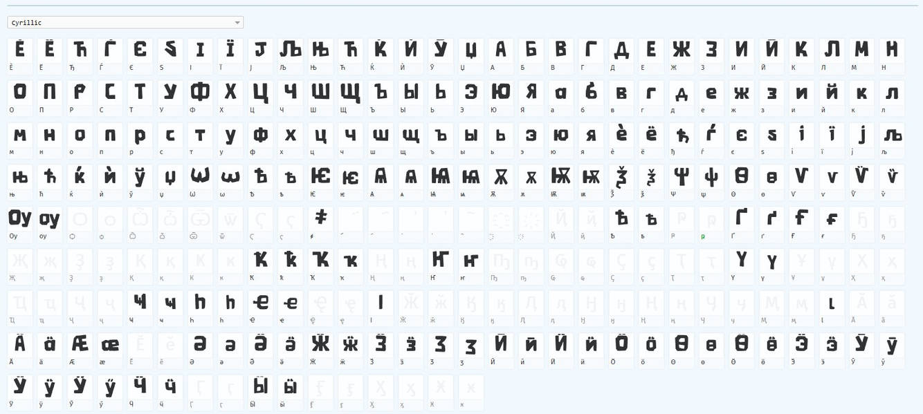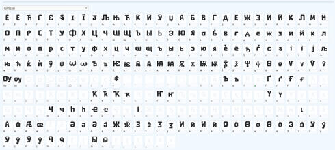 cyrillic glyphs, greek and hebrew and glagolitic (azu only) by niceclub95 and stuff