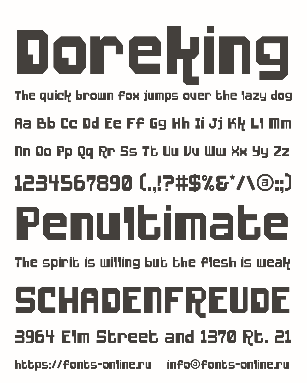 Шрифт Doreking. Гарнитура содержит 1 файл и поддерживает 41 язык. Можно использовать в коммерческой и не коммерческой деятельности.