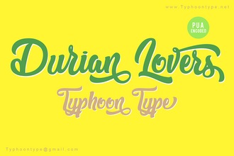 Шрифт Durian Lovers - Personal Use. Гарнитура содержит 1 файл и поддерживает 35 языков. Можно использовать в не коммерческой деятельности. Разработка Durian Lovers - Personal Use велась Typhoon Type� - Suthi Srisopha.