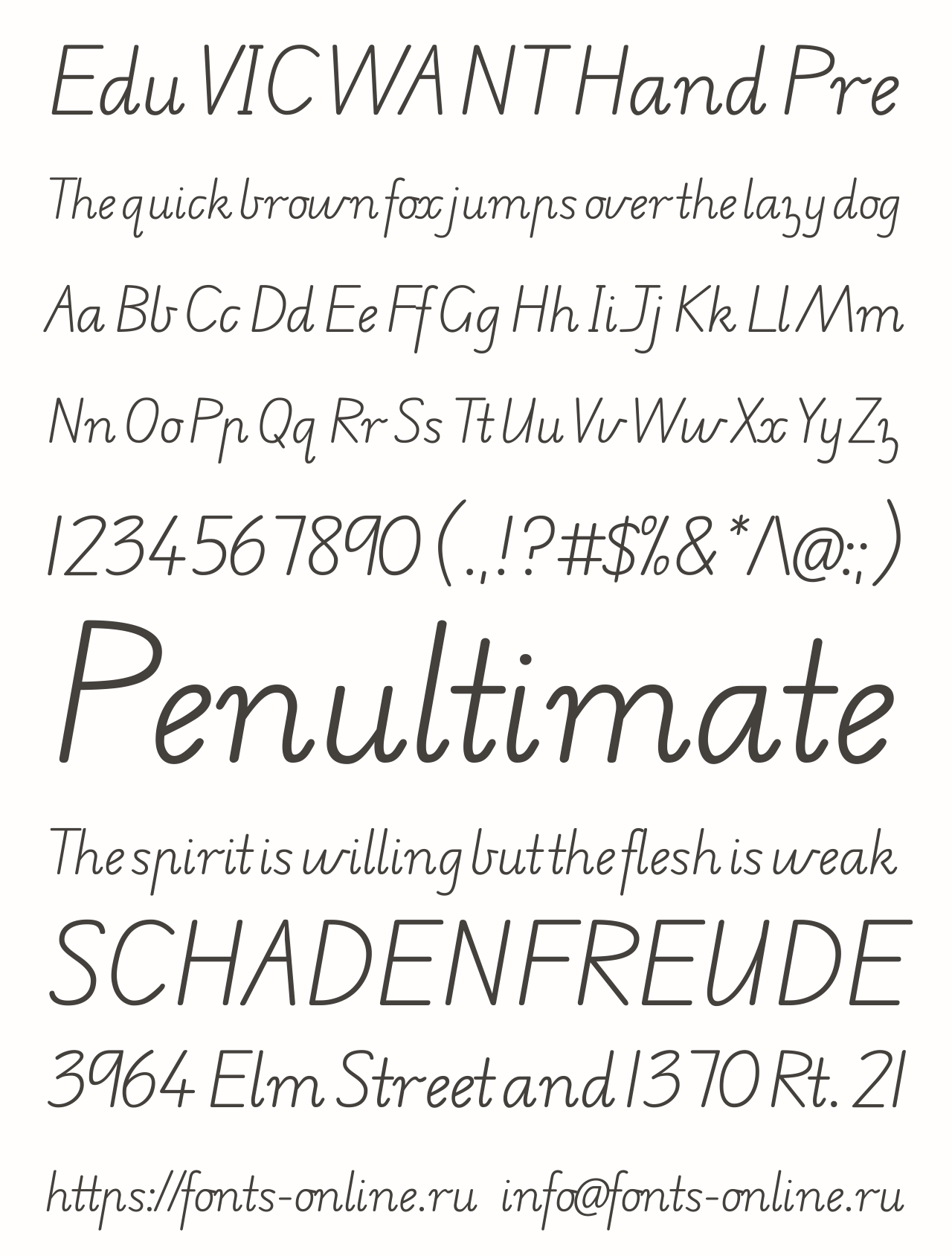 Edu VIC WA NT Hand Pre вариативный шрифт. Гарнитура содержит 5 файлов и поддерживает 56 языков. Лицензия SIL OFL 1.1. Можно использовать в коммерческой и не коммерческой деятельности. Разработка Edu VIC WA NT Hand Pre велась Eben Sorkin, Mirko Velimirovic.