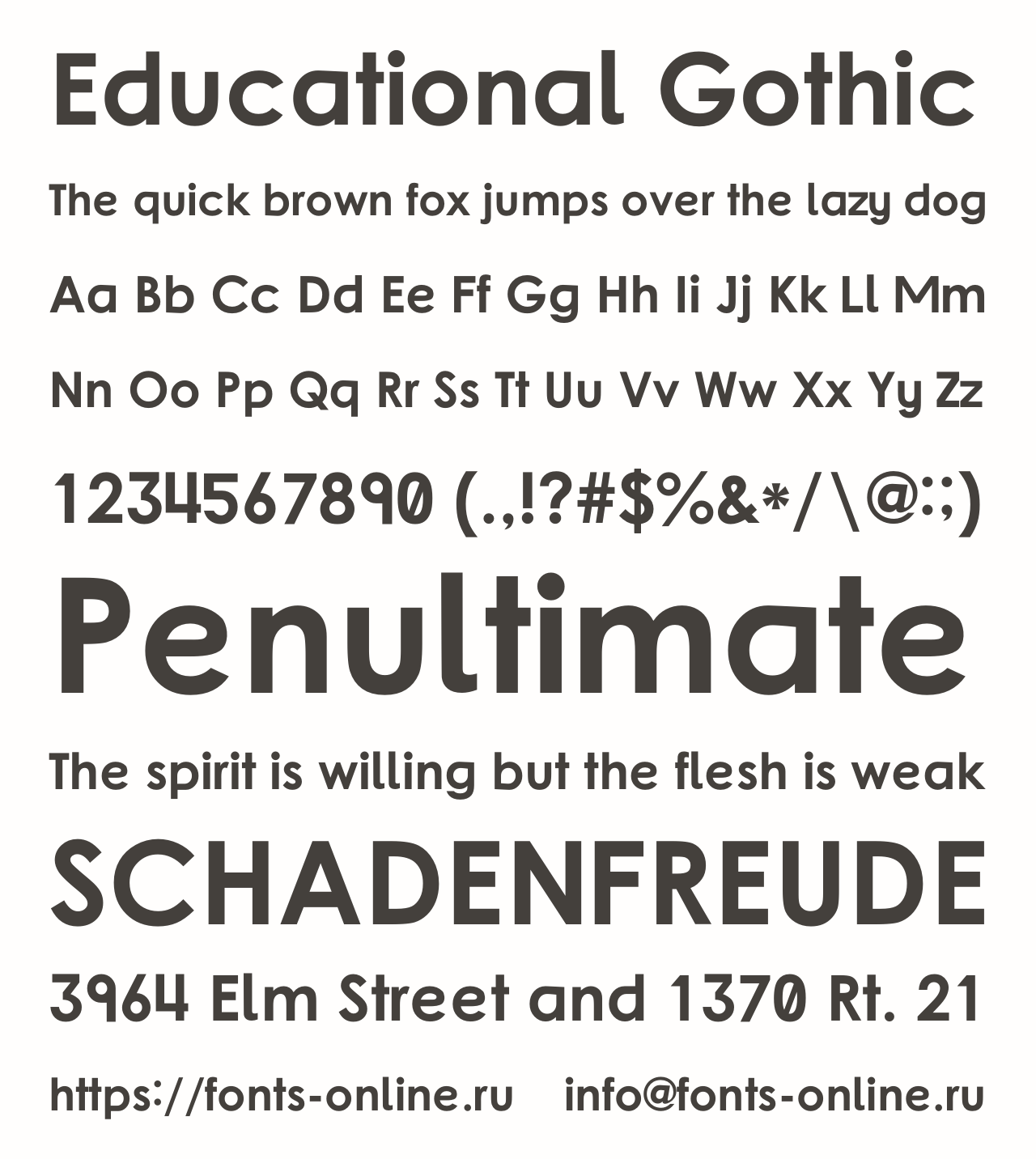 Шрифт Educational Gothic. Гарнитура содержит 1 файл и поддерживает 66 языков. Лицензия GNU LGPL 3.0. Можно использовать в коммерческой и не коммерческой деятельности.