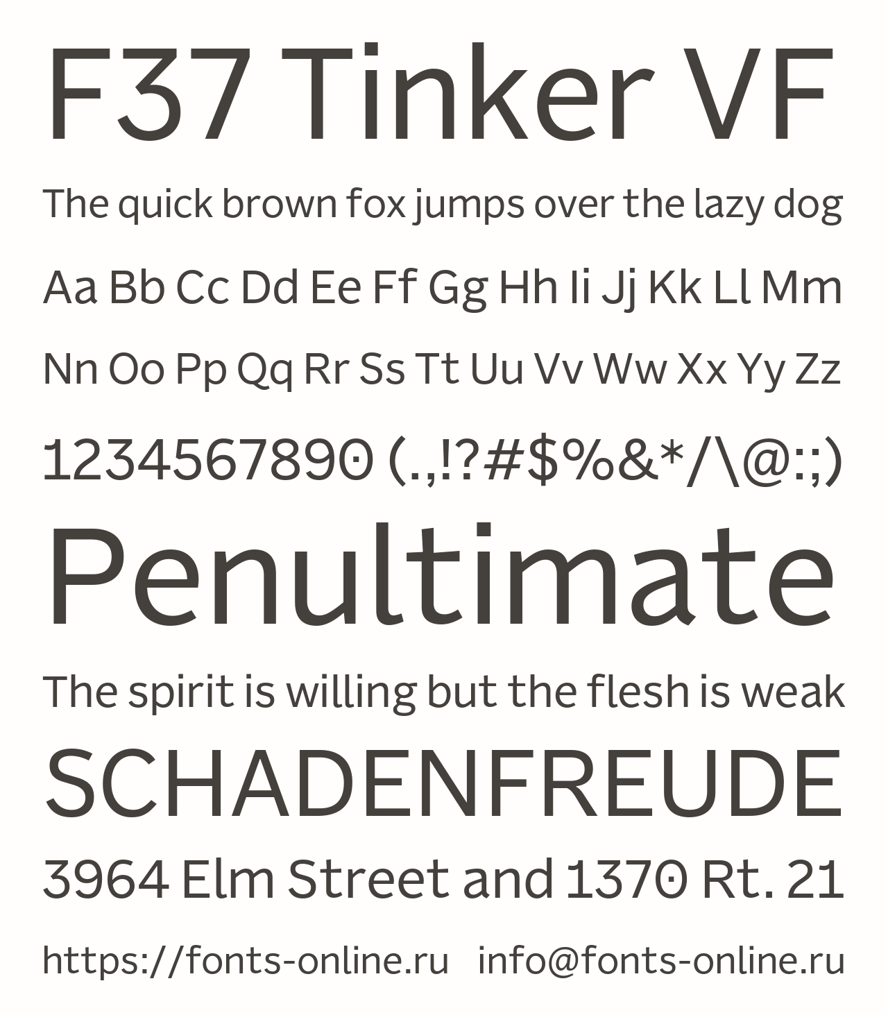F37 Tinker VF вариативный шрифт. Гарнитура содержит 4 файла и поддерживает 60 языков. Разработка F37 Tinker VF велась Ryan Williamson.