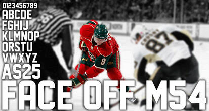 Шрифт Face Off M54. Гарнитура содержит 1 файл и поддерживает 12 языков. Можно использовать в не коммерческой деятельности. Разработка Face Off M54 велась justme54s.