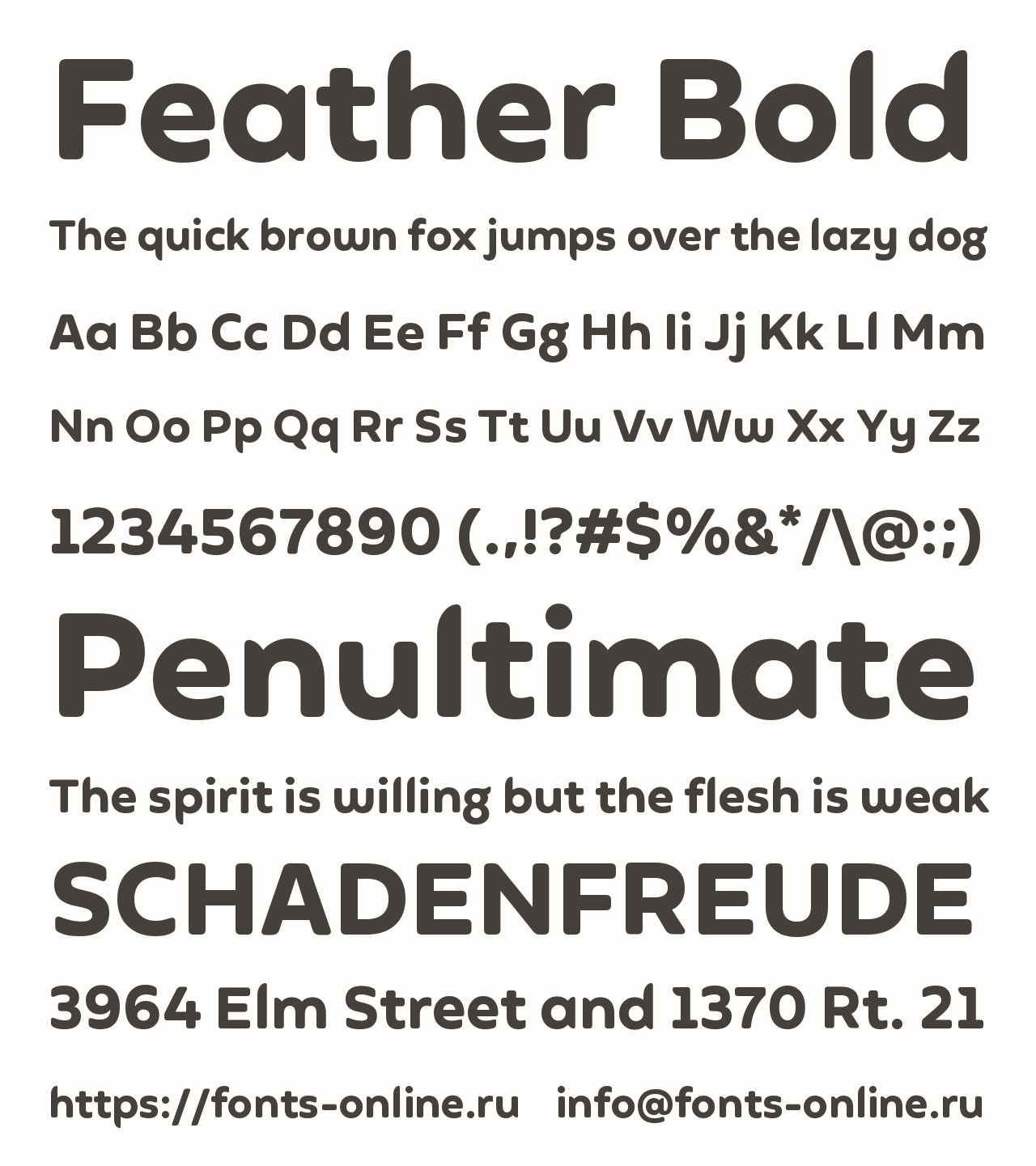 Feather Bold PinterestFacebookTwitter Скачать Feather Bold Тестировать Feather Bold Сообщить об ошибке Шрифт Feather Bold. Гарнитура содержит 1 файл и поддерживает 59 языков. Copyright Copyright (c) 2019 by Fontsmith Ltd. All rights reserved. This font may not be altered in any way without prior permission of Fontsmith Ltd. Дополнительная информация Категории Тематические шрифты Брендовые шрифты Шрифты без засечек Шрифты для заголовков Шрифты для текста Языки Албанский Английский Африкаанс Баскский Бретонский Букмол Валлийский Венгерский Волапюк Галисийский Гренландский Датский Западнофризский Зулу Индонезийский Ирландский Исландский Испанский Итальянский Каталанский Кечуанский Кикуйю Корнский Латышский Литовский Луганда Люксембургский Малагасийский Мальтийский Мэнский Немецкий Нидерландский Новонорвежский Оромо Польский Португальский Романшский Руанда Румынский Рунди Санго Северносаамский Северный ндебеле Словацкий Словенский Сомалийский Суахили Турецкий Узбекский Фарерский Финский Французский Хорватский Чешский Шведский Шона Шотландский Эсперанто Эстонский