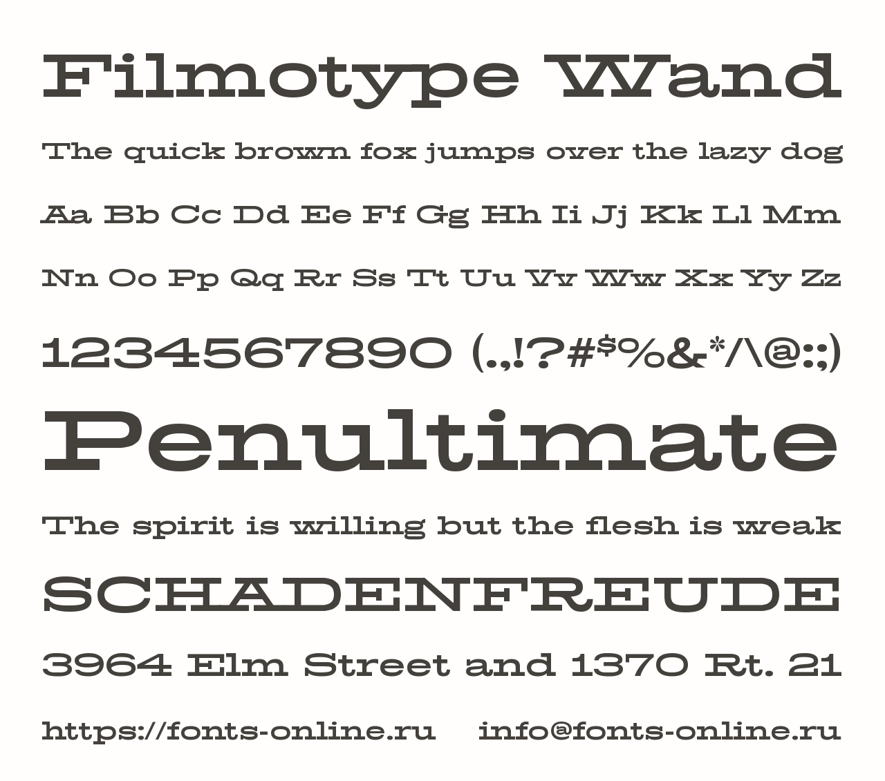 Filmotype Wand PinterestFacebookTwitter Скачать Filmotype Wand Тестировать Filmotype Wand Сообщить об ошибке Шрифт Filmotype Wand. Гарнитура содержит 1 файл и поддерживает 68 языков. Copyright Copyright (c) 2015 by Charles Gibbons for Font Diner. All rights reserved. Дополнительная информация Категории Wanted шрифты Исторические шрифты Western шрифты Шрифты для заголовков Шрифты для текста Шрифты с засечками Языки Албанский Английский Африкаанс Баскский Белорусский Болгарский Боснийский Бретонский Букмол Валлийский Венгерский Волапюк Галисийский Гренландский Греческий Датский Западнофризский Зулу Индонезийский Ирландский Исландский Испанский Итальянский Каталанский Кечуанский Кикуйю Корнский Латышский Литовский Луганда Люксембургский Македонский Малагасийский Мальтийский Мэнский Немецкий Нидерландский Новонорвежский Оромо Польский Португальский Романшский Руанда Румынский Рунди Русский Санго Северносаамский Северный ндебеле Сербский Словацкий Словенский Сомалийский Суахили Тонганский Турецкий Узбекский Фарерский Финский Французский Хорватский Чеченский Чешский Шведский Шона Шотландский Эсперанто Эстонский
