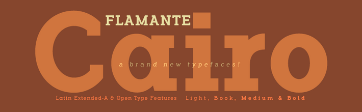 Flamante is a new family of Slab Serif fonts with four weights: Light, Book, Medium and Bold and their corresponding italic versions.