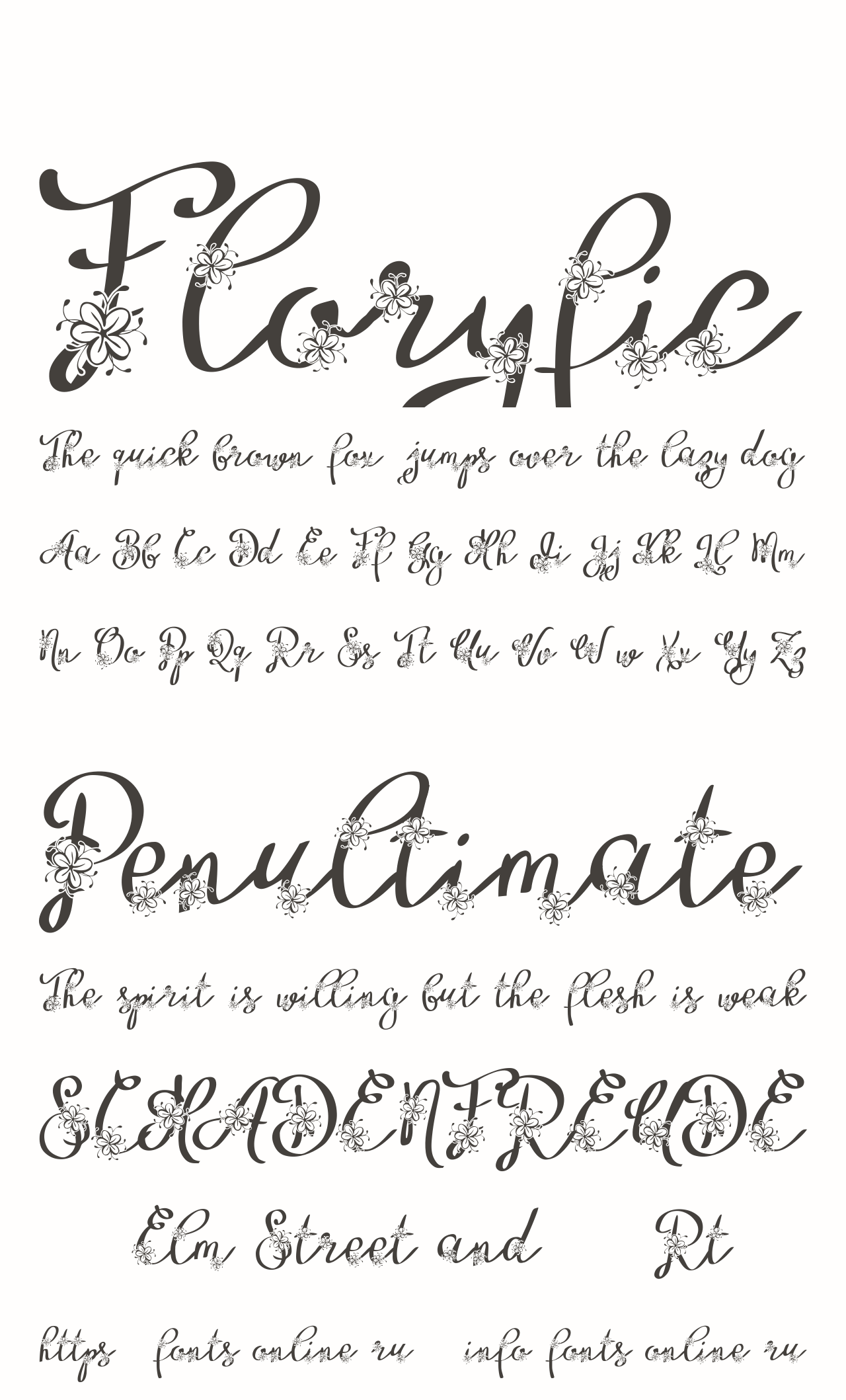 Шрифт Floryfic. Гарнитура содержит 1 файл и поддерживает 12 языков. Можно использовать в не коммерческой деятельности.