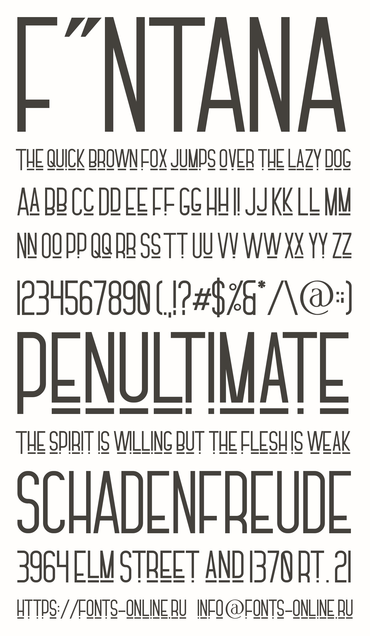 Шрифт F”NTANA. Гарнитура содержит 1 файл и поддерживает 35 языков. Можно использовать в не коммерческой деятельности. Разработка F”NTANA велась Gilar Studio.