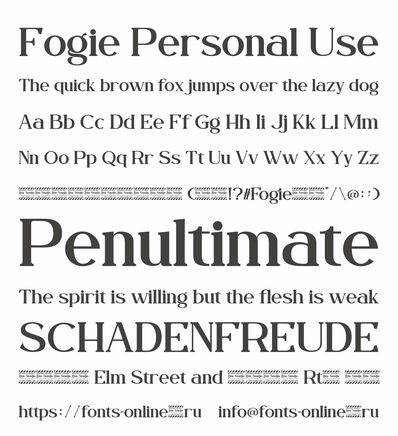 Шрифт Fogie Personal Use. Гарнитура содержит 1 файл и поддерживает 41 язык. Можно использовать в не коммерческой деятельности. Разработка Fogie Personal Use велась Din Studio.