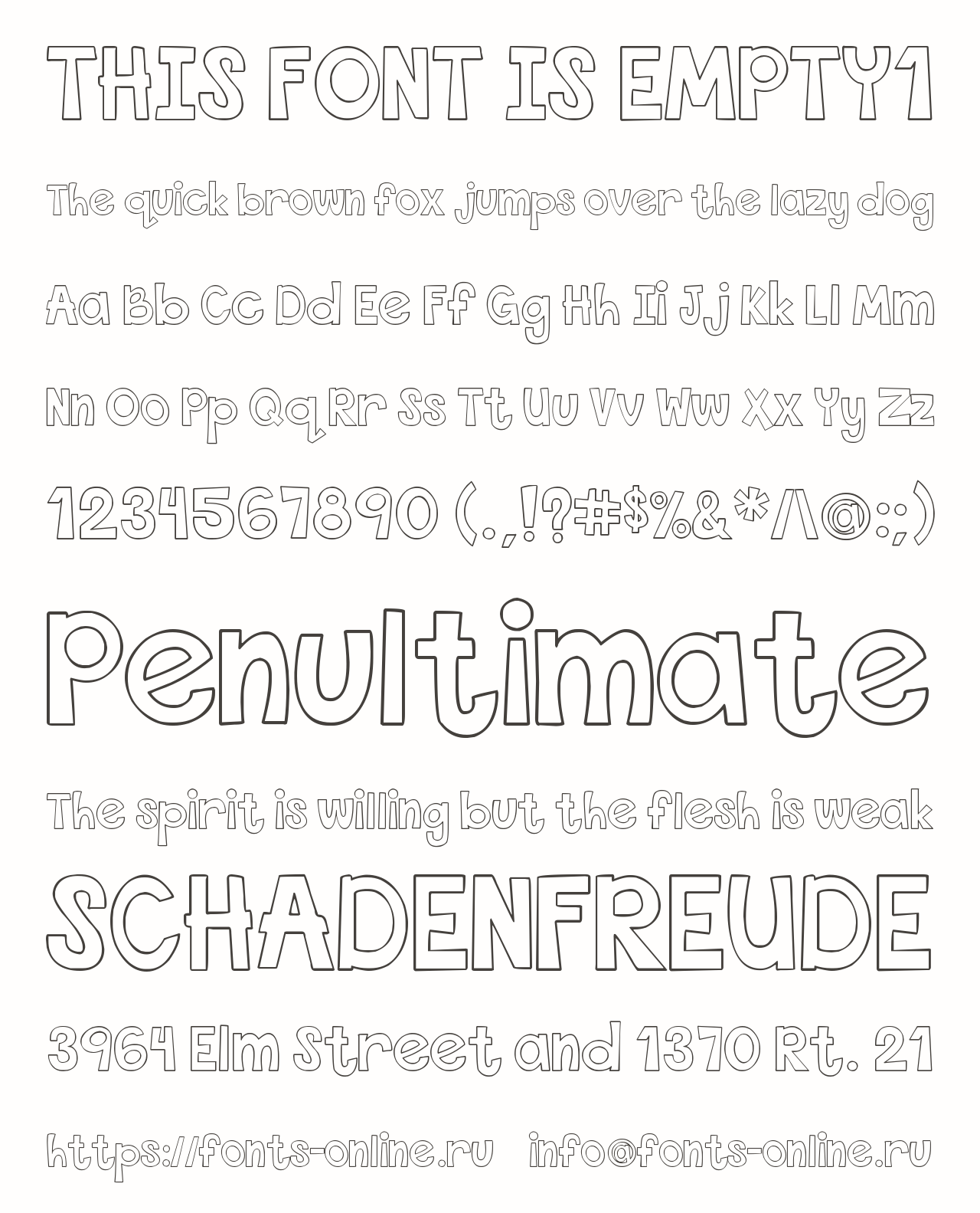 Шрифт THIS FONT IS EMPTY1. Гарнитура содержит 1 файл и поддерживает 37 языков. Можно использовать в не коммерческой деятельности. Разработка THIS FONT IS EMPTY1 велась DJB Fonts.