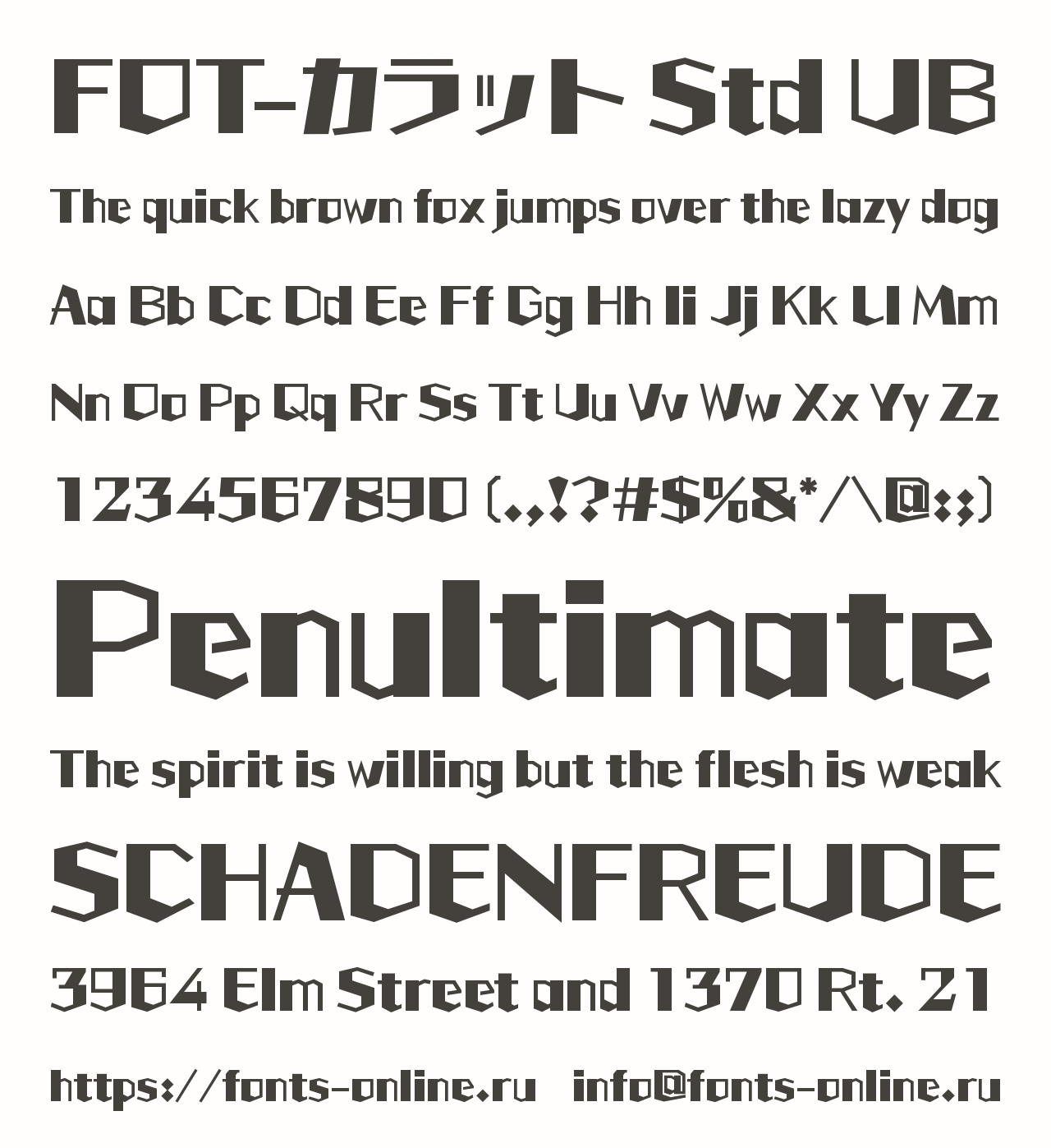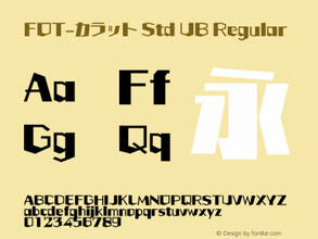 FOT-カラット Std UB PinterestFacebookTwitter Скачать FOT-カラット Std UB Тестировать FOT-カラット Std UB Сообщить об ошибке Шрифт FOT-カラット Std UB. Гарнитура содержит 1 файл и поддерживает 44 языка. Изображения Copyright Copyright © 2010 Fontworks Inc. All Rights Reserved. Дополнительная информация Категории Декоративные шрифты Шрифты без засечек Шрифты для заголовков Языки Албанский Английский Африкаанс Баскский Болгарский Бретонский Букмол Волапюк Галисийский Датский Зулу Индонезийский Ирландский Исландский Испанский Итальянский Каталанский Кечуанский Корнский Люксембургский Малагасийский Мэнский Немецкий Нидерландский Новонорвежский Оромо Португальский Романшский Руанда Рунди Русский Санго Северный ндебеле Сомалийский Суахили Узбекский Фарерский Финский Французский Чеченский Шведский Шона Шотландский Эстонский
