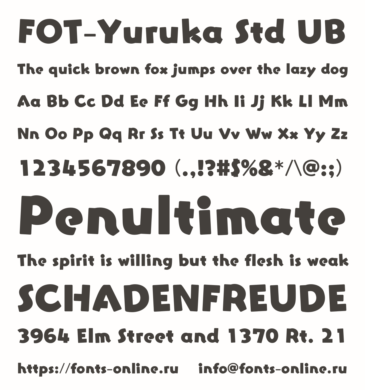FOT-Yuruka Std UB PinterestFacebookTwitter Скачать FOT-Yuruka Std UB Тестировать FOT-Yuruka Std UB Сообщить об ошибке Шрифт FOT-Yuruka Std UB. Гарнитура содержит 1 файл и поддерживает 44 языка. Copyright Copyright © 2012-2013 Fontworks Inc. All Rights Reserved. Дополнительная информация Категории Декоративные шрифты Иностранные шрифты Азиатские шрифты Комические шрифты Тематические шрифты Шрифты для заголовков Шрифты для текста Языки Албанский Английский Африкаанс Баскский Болгарский Бретонский Букмол Волапюк Галисийский Датский Зулу Индонезийский Ирландский Исландский Испанский Итальянский Каталанский Кечуанский Корнский Люксембургский Малагасийский Мэнский Немецкий Нидерландский Новонорвежский Оромо Португальский Романшский Руанда Рунди Русский Санго Северный ндебеле Сомалийский Суахили Узбекский Фарерский Финский Французский Чеченский Шведский Шона Шотландский Эстонский