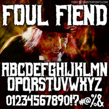 Шрифт Foul Fiend. Гарнитура содержит 2 файла и поддерживает 0 языков. Разработка Foul Fiend велась Sinister Fonts.