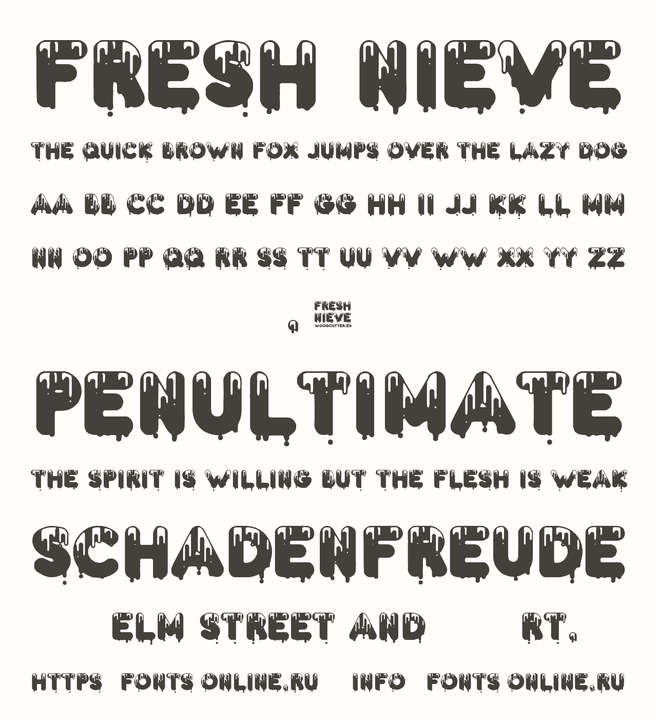Шрифт Fresh Nieve. Гарнитура содержит 1 файл и поддерживает 37 языков. Можно использовать в не коммерческой деятельности. Разработка Fresh Nieve велась Woodcutter.