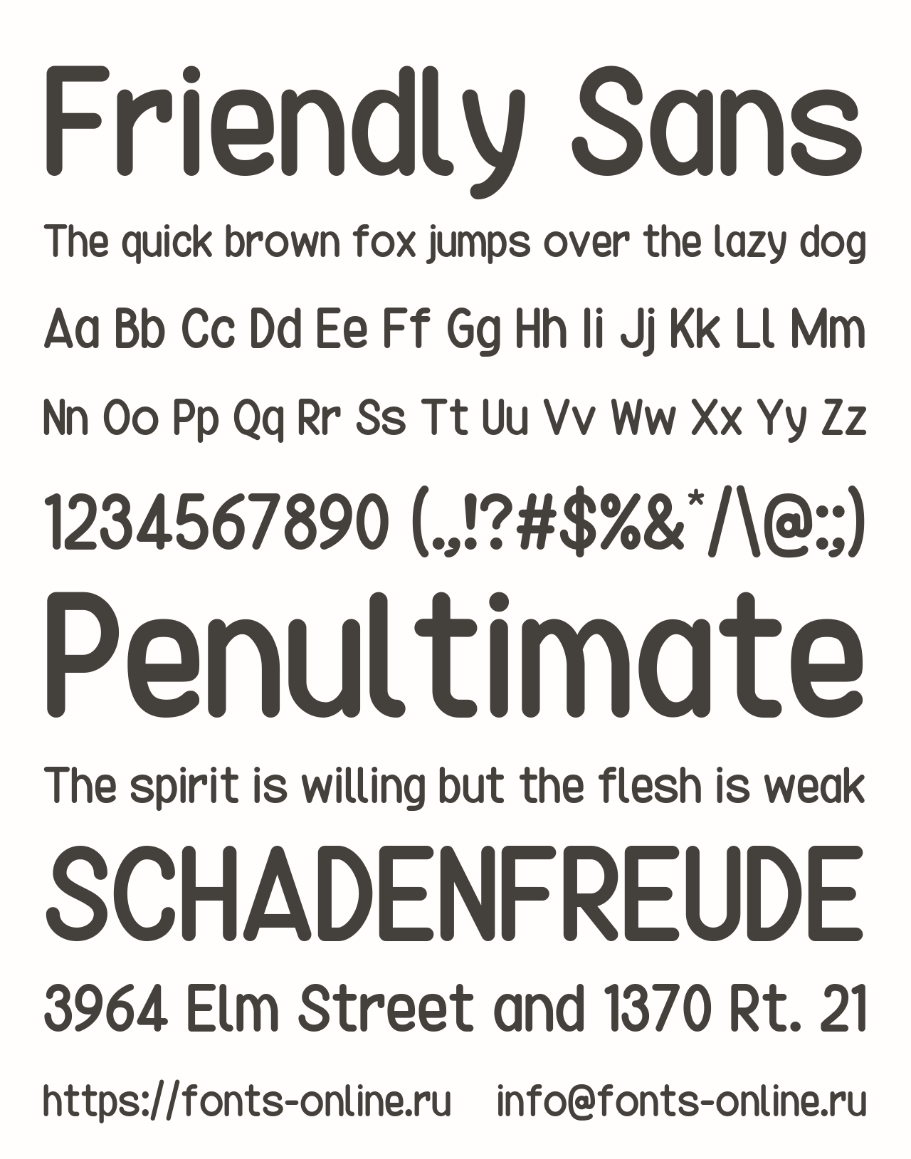 Шрифт Friendly Sans. Гарнитура содержит 2 файла и поддерживает 23 языка. Лицензия SIL OFL 1.1. Можно использовать в коммерческой и не коммерческой деятельности. Разработка Friendly Sans велась GGBotNet.