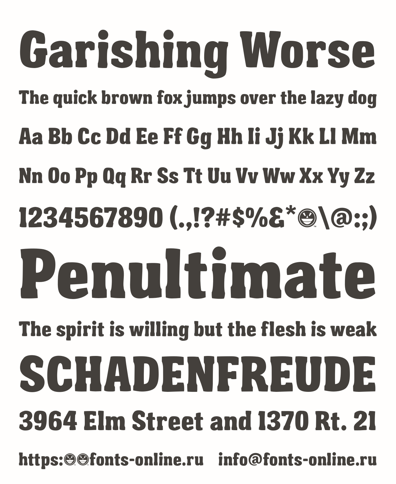 Шрифт Garishing Worse. Гарнитура содержит 2 файла и поддерживает 41 язык. Можно использовать в не коммерческой деятельности. Разработка Garishing Worse велась Fontry.