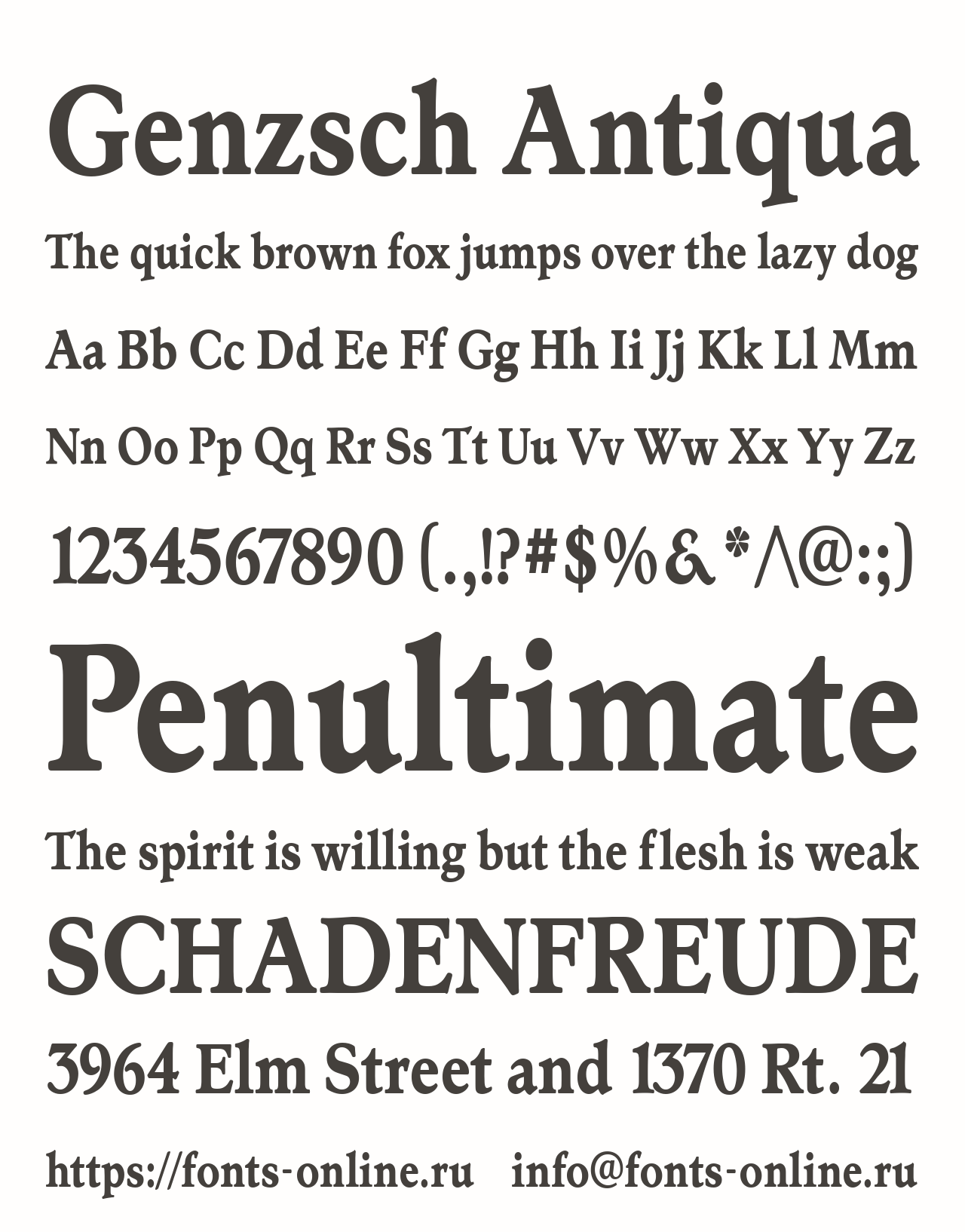 Шрифт Genzsch Antiqua. Гарнитура содержит 4 файла и поддерживает 71 язык. Можно использовать в не коммерческой деятельности. Разработка Genzsch Antiqua велась Alexandra Gophmann.