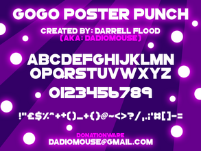Шрифт GoGoPosterPunch. Гарнитура содержит 4 файла и поддерживает 36 языков. Разработка GoGoPosterPunch велась Darrell Flood.