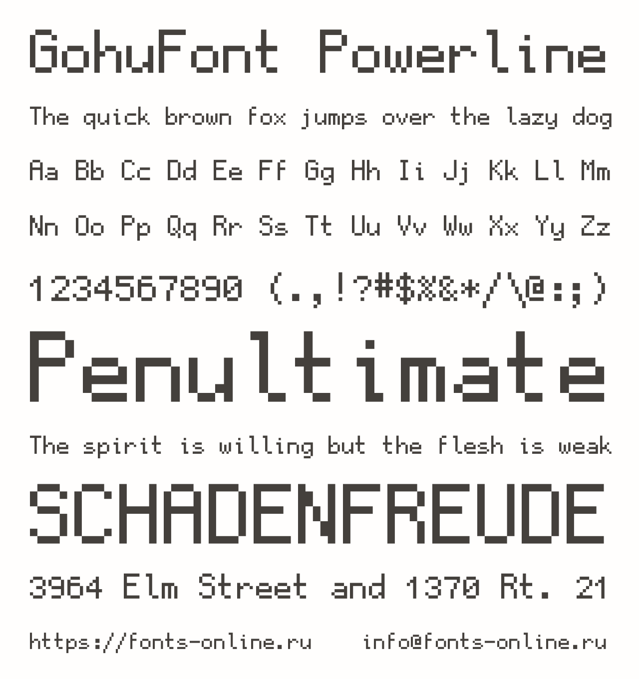 GohuFont Powerline PinterestFacebookTwitter Скачать GohuFont Powerline Тестировать GohuFont Powerline Сообщить об ошибке Шрифт GohuFont Powerline. Гарнитура содержит 1 файл и поддерживает 75 языков. Изображения Copyright Copyright by Hugo Chargois - Licensed under the WTFPL - Converted by Guilherme Maeda, Powerline symbols and additional glyphs added by Daniel Lima. Дополнительная информация Категории Пиксельные шрифты Тематические шрифты Языки Азербайджанский Акан Албанский Английский Африкаанс Баскский Белорусский Болгарский Боснийский Бретонский Букмол Валлийский Венгерский Волапюк Галисийский Гренландский Греческий Датский Западнофризский Зулу Иврит Идиш Индонезийский Ирландский Исландский Испанский Итальянский Каталанский Кечуанский Кикуйю Корнский Латышский Литовский Луба-катанга Луганда Люксембургский Македонский Малагасийский Мальтийский Мэнский Немецкий Нидерландский Новонорвежский Оромо Осетинский Польский Португальский Романшский Руанда Румынский Рунди Русский Санго Северносаамский Северный ндебеле Сербский Словацкий Словенский Сомалийский Суахили Тонганский Турецкий Узбекский Украинский Фарерский Финский Французский Хорватский Чеченский Чешский Шведский Шона Шотландский Эсперанто Эстонский