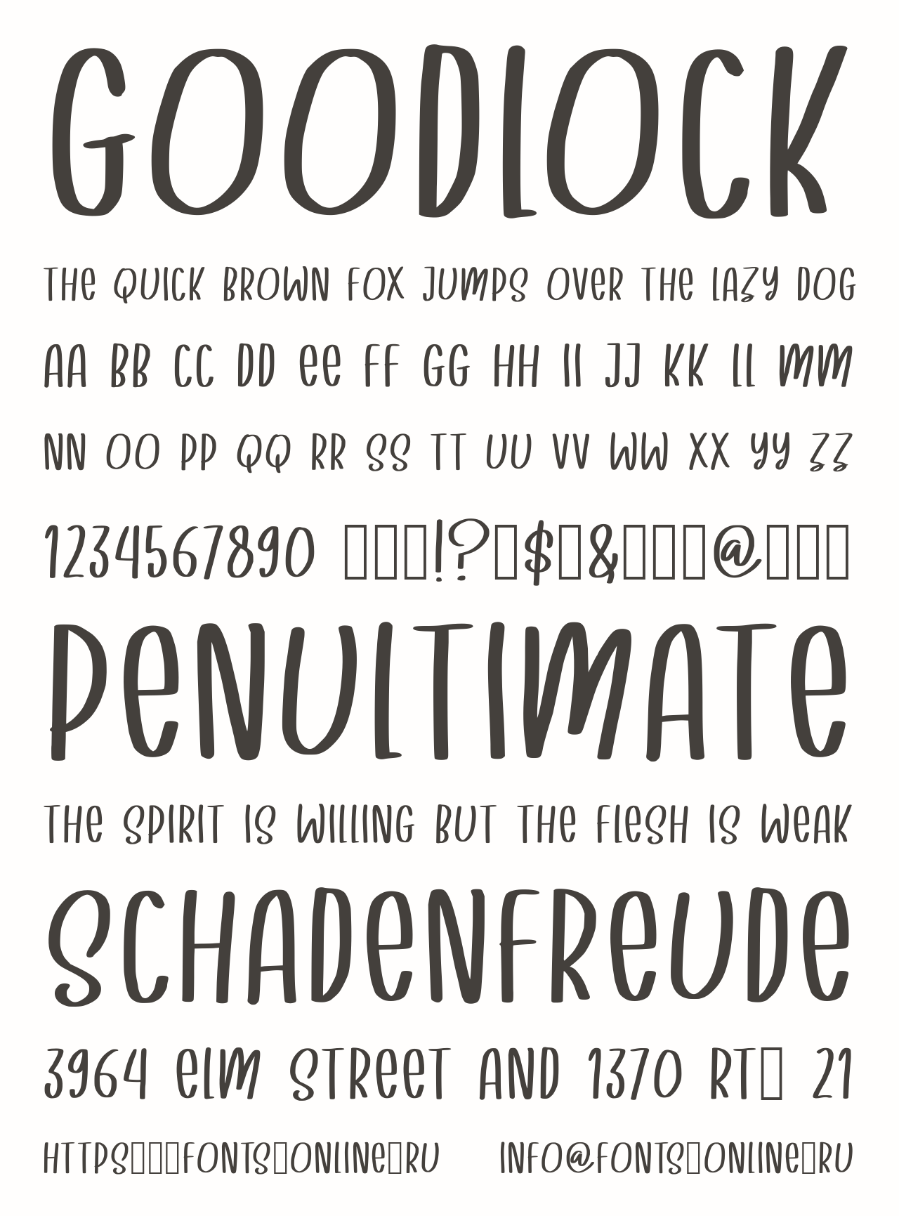Шрифт Goodlock. Гарнитура содержит 2 файла и поддерживает 12 языков. Можно использовать в не коммерческой деятельности. Разработка Goodlock велась selawetype.