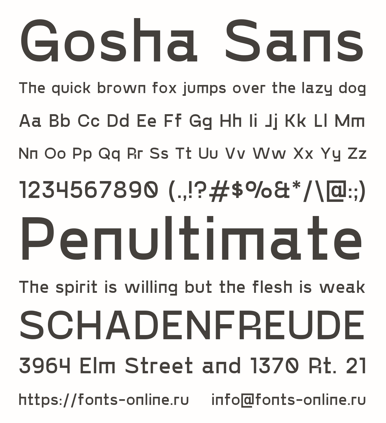 Gosha Sans PinterestFacebookTwitter Скачать Gosha Sans Тестировать Gosha Sans Сообщить об ошибке Шрифт Gosha Sans. Гарнитура содержит 2 файла и поддерживает 59 языков. Copyright Pangram Pangram® Дополнительная информация Категории Шрифты без засечек Шрифты для заголовков Шрифты для текста Языки Албанский Английский Африкаанс Баскский Болгарский Бретонский Букмол Валлийский Венгерский Волапюк Галисийский Датский Западнофризский Зулу Индонезийский Ирландский Исландский Испанский Итальянский Каталанский Кечуанский Корнский Латышский Литовский Луганда Люксембургский Малагасийский Мальтийский Мэнский Немецкий Нидерландский Новонорвежский Оромо Польский Португальский Романшский Руанда Румынский Рунди Русский Санго Северносаамский Северный ндебеле Словацкий Словенский Сомалийский Суахили Турецкий Узбекский Фарерский Финский Французский Хорватский Чеченский Чешский Шведский Шона Шотландский Эстонский